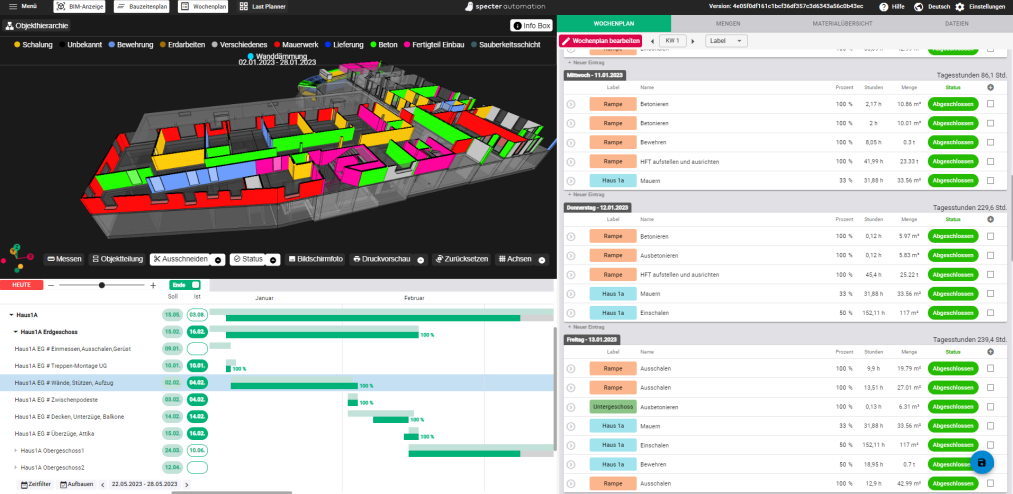 Mit specter automation haben Sie alle relevanten Daten und Informationen jederzeit griffbereit. Sie können Baustellenaufgaben, Materialien und Ressourcen in Echtzeit überwachen und verwalten – ganz ohne Papierchaos und ständiges Hin- und Herlaufen auf der Baustelle. Alle Informationen werden zentral und digital gespeichert, sodass Sie und Ihr Team schnell auf alle Daten zugreifen können. Ob via Desktop, Smartphone oder Tablet: Ihre Baustelle läuft jederzeit synchron. Mit unserer Bauprojektmanagement Software behalten Sie stets den Überblick über Fortschritt, Zeitpläne und Verantwortlichkeiten.